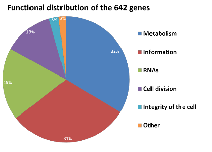 Figure 2: Functional distribution of the 642 important genes of MiniBacillus